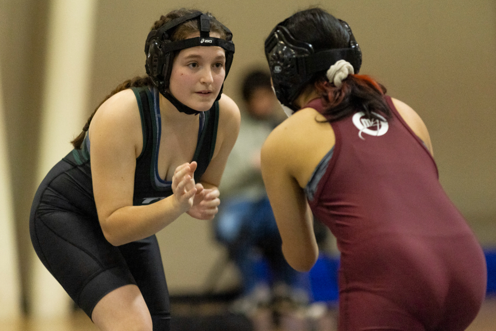 Mallory Velte (left) won her second straight national championship in the 143-pound division. Photo Courtesy of The Peak